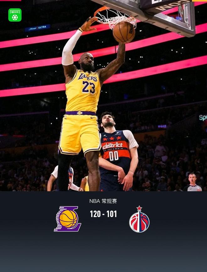 第四节湖人海耶斯拿下10分,奇才贾斯汀-尚帕涅拿下7分,最终湖人120-101战胜奇才