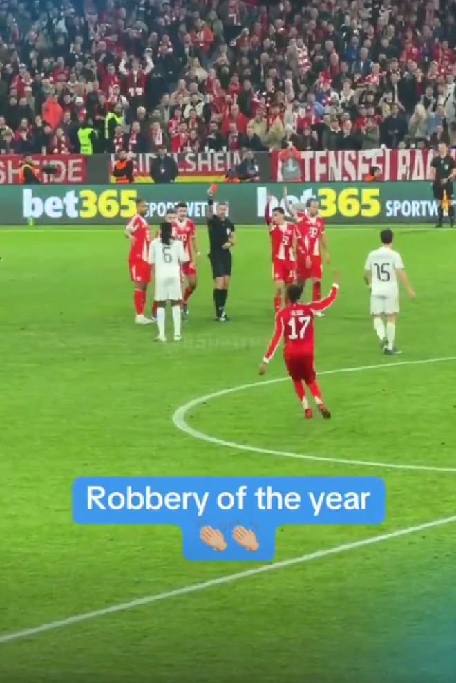 卡马文加红牌被罚出场后,皇马在8分钟内崩盘,第89分钟,迪亚斯世界波,拜仁3-3扳平比分,第94分钟,奥利塞绝杀,拜仁 4-3击败皇马。曾经的“欧冠之王”被淘汰出局,无缘欧冠半决赛!