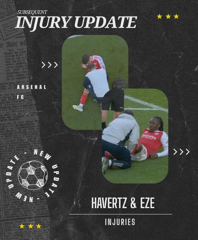 专注于球员伤病分析的推主Physio Scout Football Injury Analysis表示,从阿尔特塔赛后的言论以及哈弗茨和埃泽的反应来看,两人更像是肌肉不适或者发紧,而非拉伤。