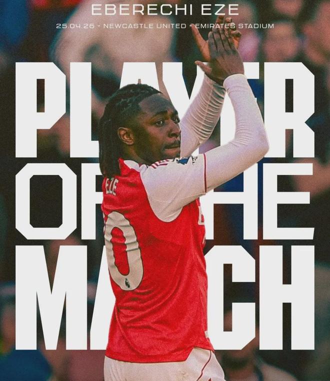 埃泽被阿森纳官方票选为了本场比赛最佳球员。