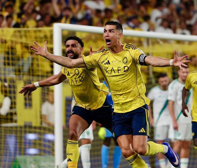 菲利克斯的角球罚入禁区,前点的C罗高高跃起,精彩的回头望月,将皮球甩进网窝,帮助利雅得胜利打破僵局。